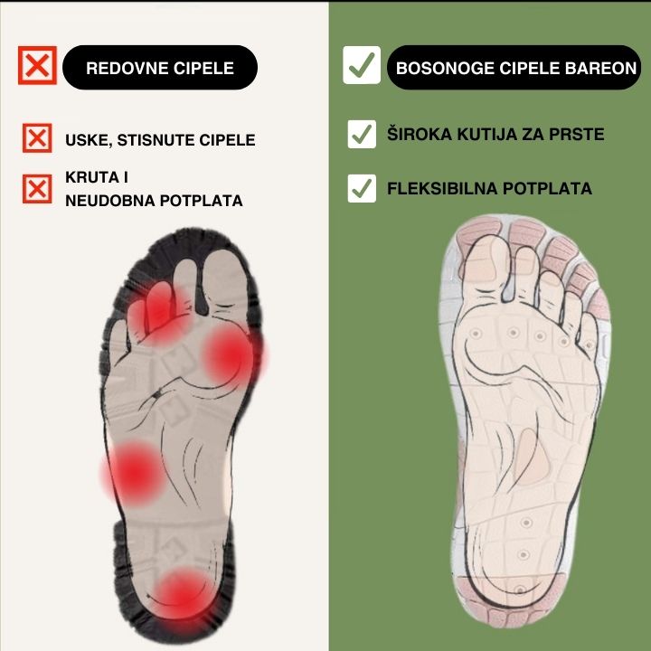 S BAREON bosonogim cipelama birate udobnost, zdrava stopala i prirodan doživljaj hodanja. Ove jedinstvene cipele pružaju osjećaj hodanja bosih nogu, uz zaštitu i potporu.
